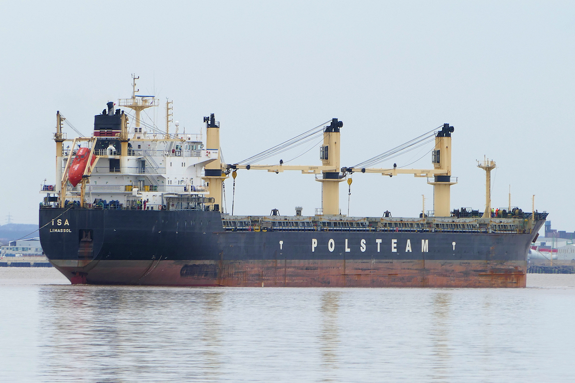 Having brought in wind turbine towers from Vietnam, the Sietas built FRAUKE passes Paull outward.