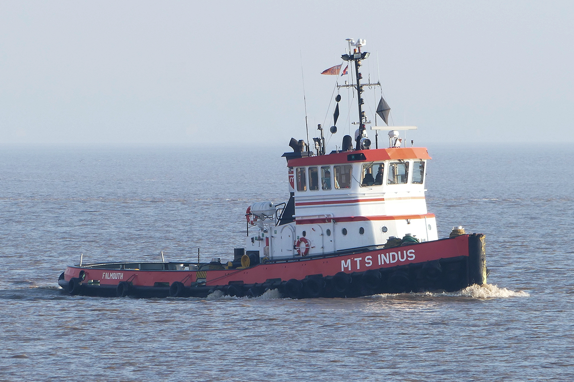 Always a bright sight, ESVAGT CHASTINE enters port after running trials off the coast.
