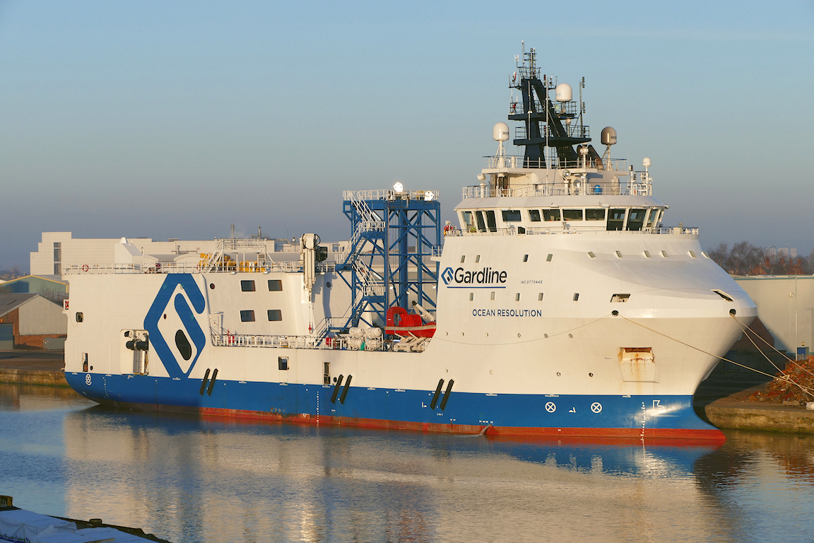 Gardline’s OCEAN RESOLUTION outward from King George dock.