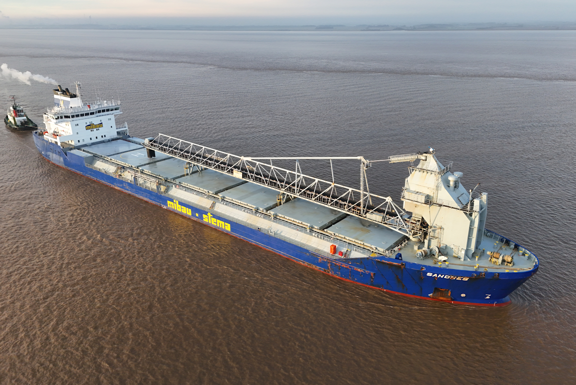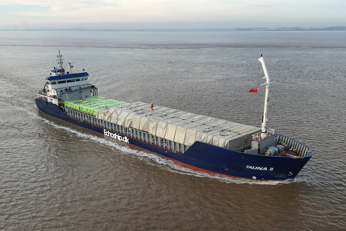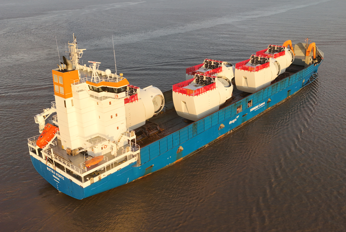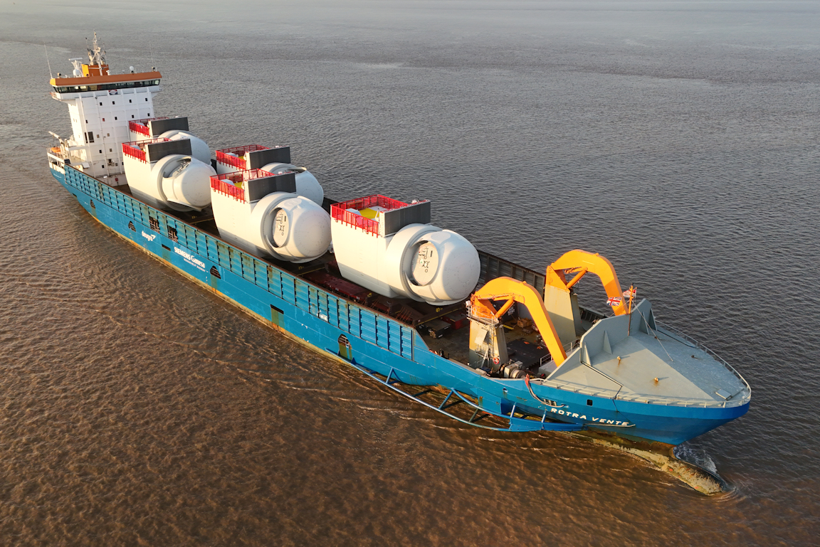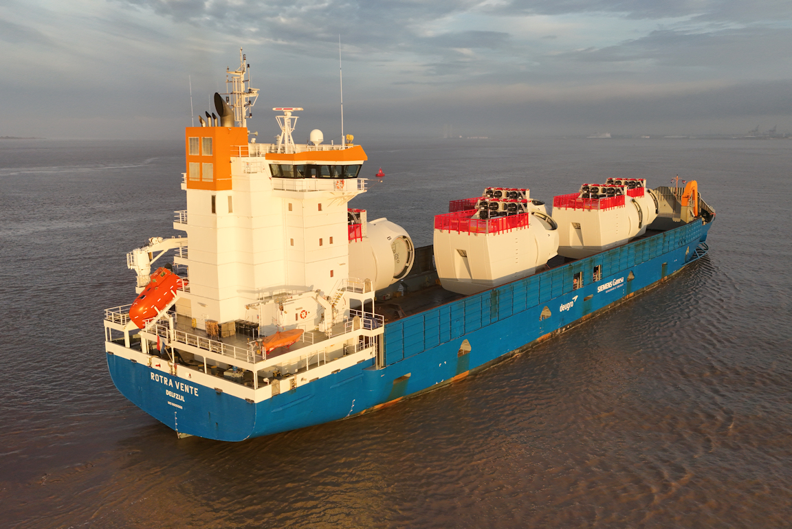 ROTRA VENTE catches the morning light as she brings in another set of wind turbine nacelles.