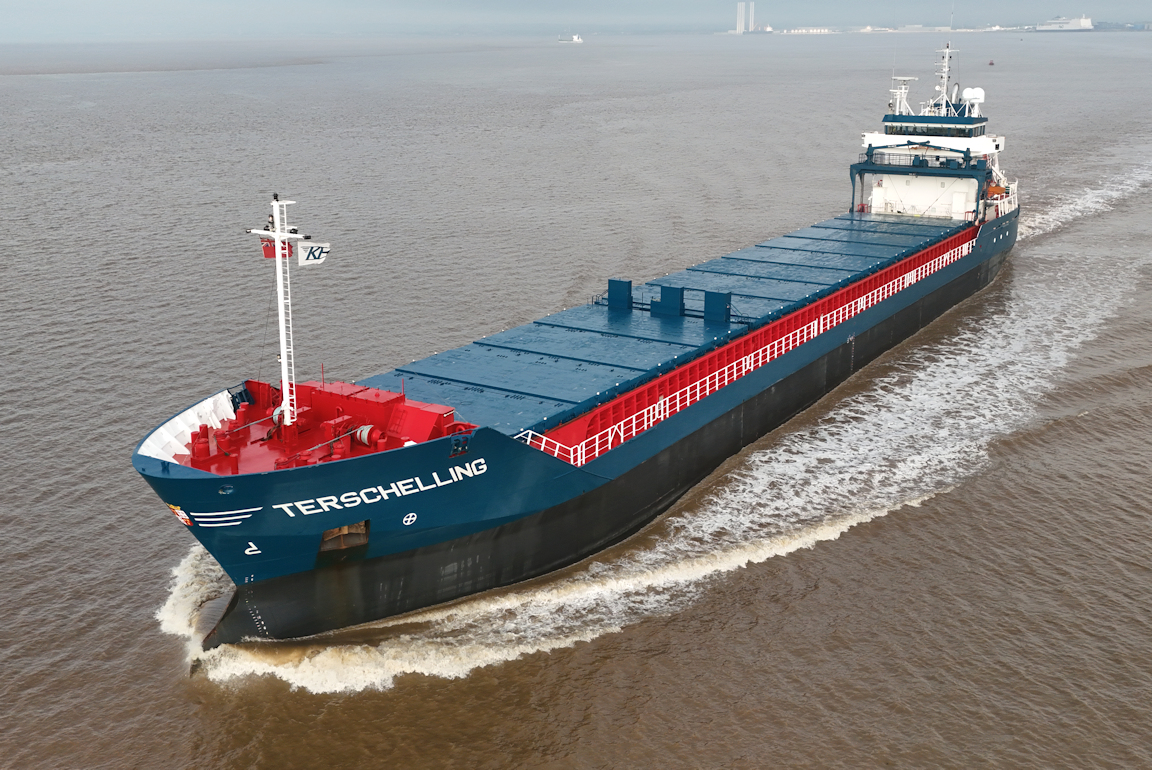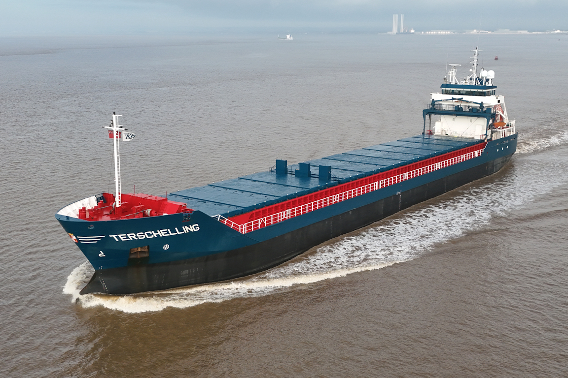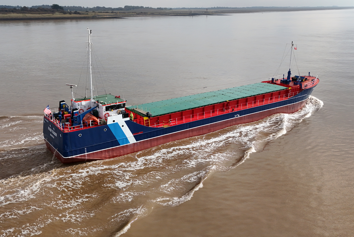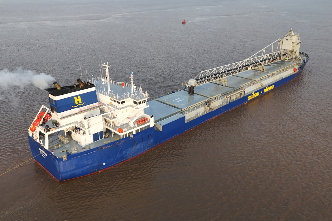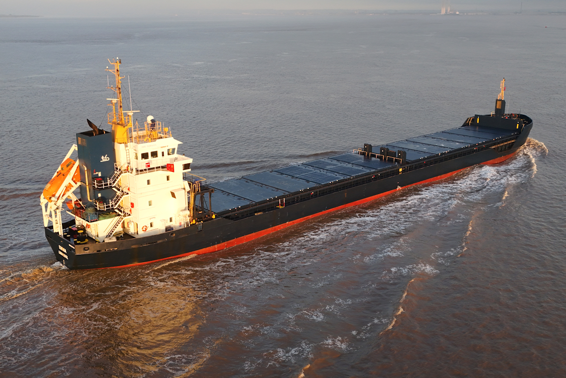ROTRA VENTE catches the morning light as she brings in another set of wind turbine nacelles.