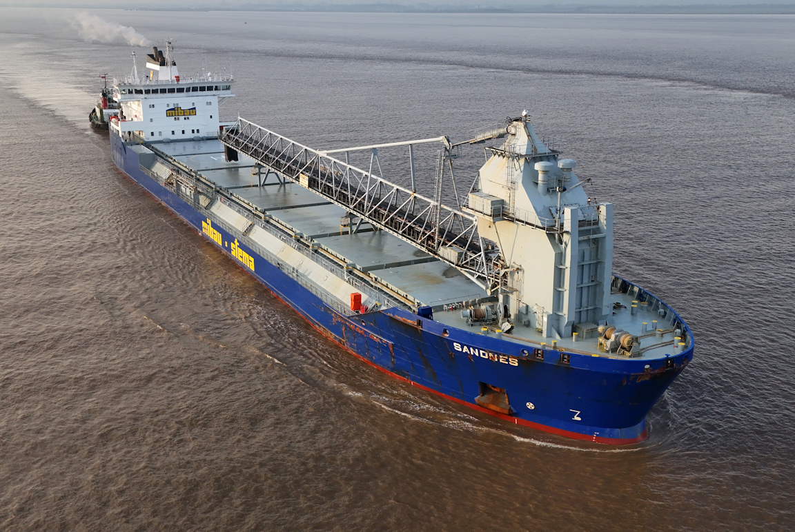 SANDNES heads in to King George dock with another cargo of stone from Norway.