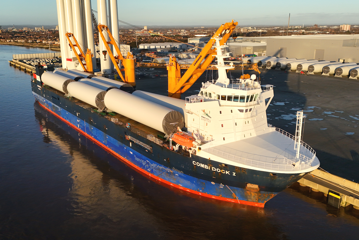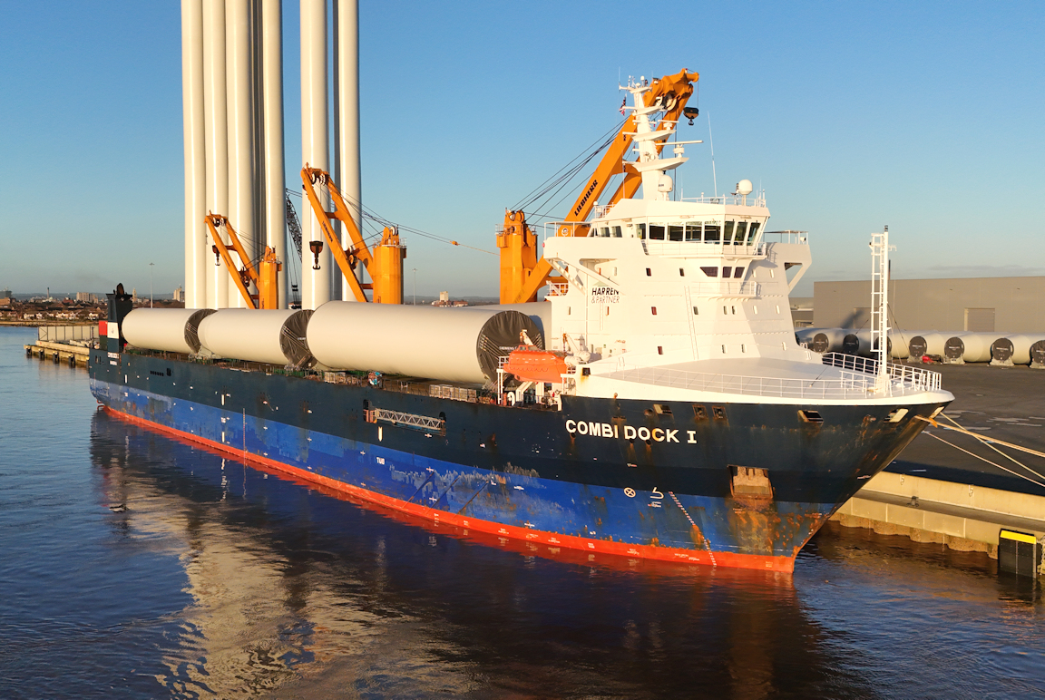 COMBI DOCK I berthed at Werner quay with another load of wind turbine towers from Spain.