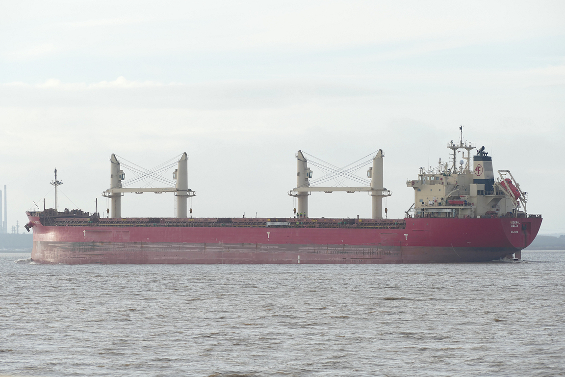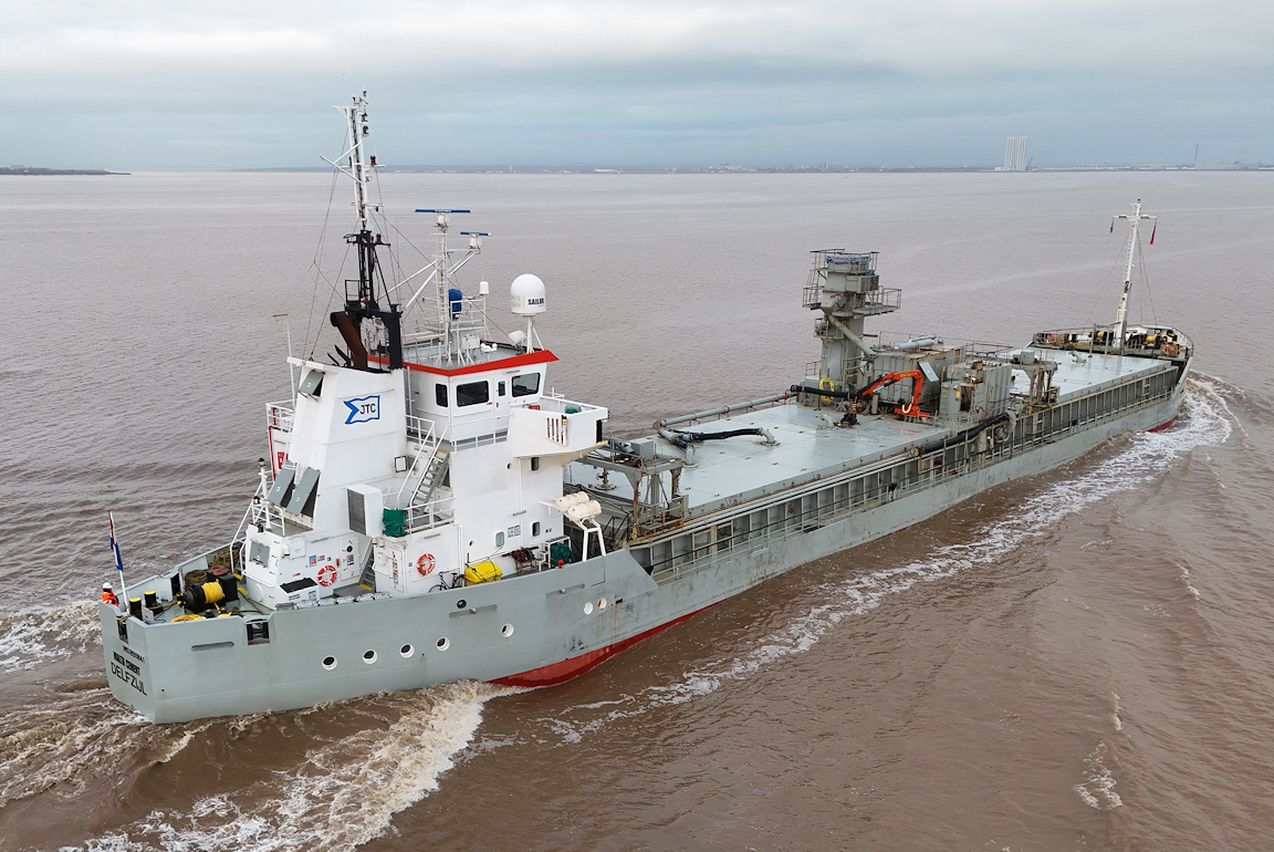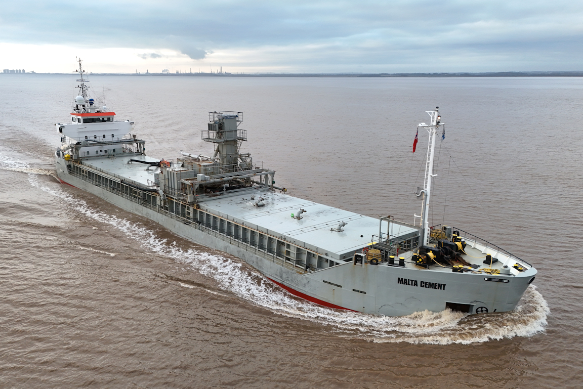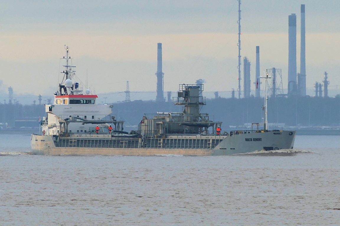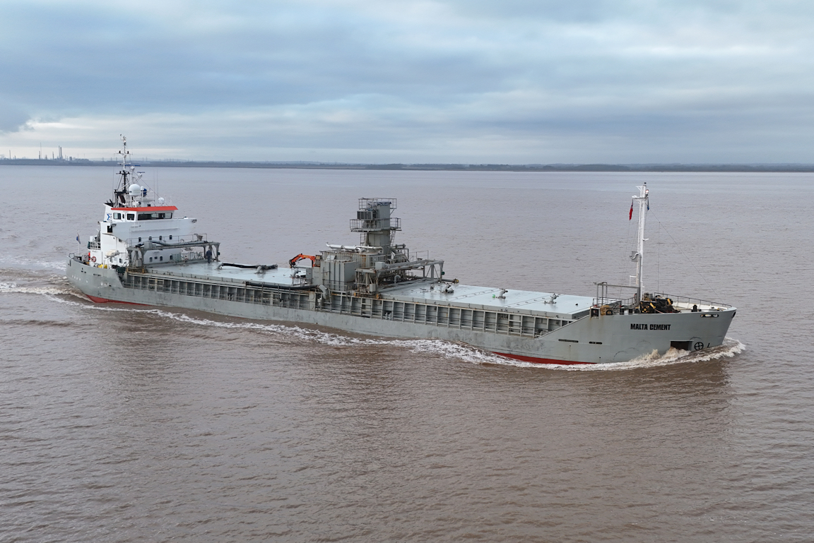The cement carrier MALTA CEMENT passes Paull inward for William Wright dock – on the limit for drone flying.